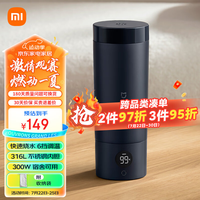 米家小米电热水杯加热杯热水壶 保温烧水杯 350ml迷你便携式旅行出差 智能恒温 316L不锈钢内胆 藏蓝色价格:149.00元!