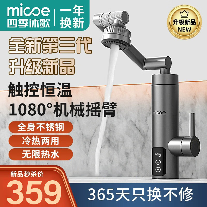 四季沐歌电热水龙头不锈钢变频机身速热家用冷热两用电热水器下进水即热式价格:379.00元!