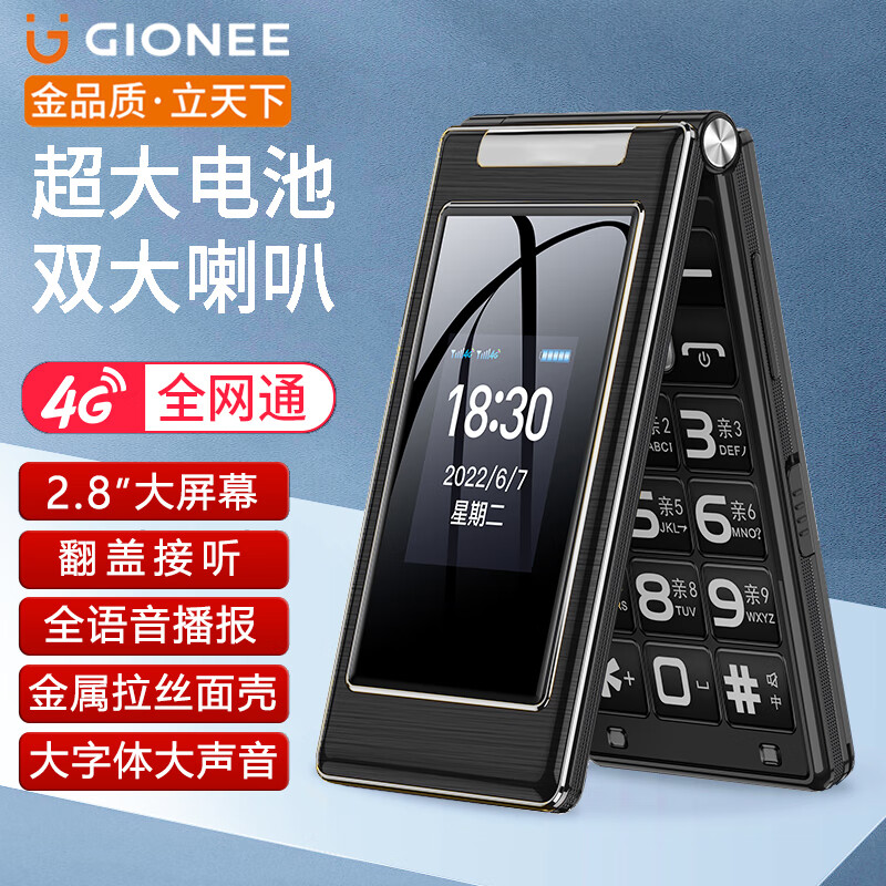 金立(Gionee)G69 4G通翻盖老人手机 2.8""大屏超长待机老年机 大字大声大按键学生功能机 双卡双待 黑色价格:239.00元!