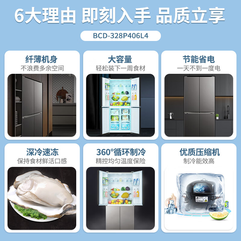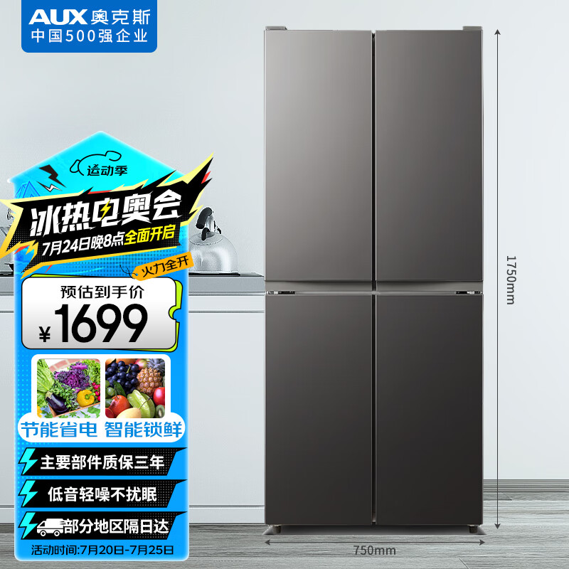 奥克斯(AUX)328升多门四门十字对开门双开门电冰箱超薄纤薄机身360°循环制冷BCD-328P406L4价格:1499.00元!