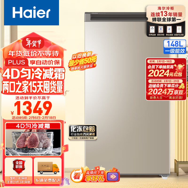 海尔(Haier)148升匀冷家用立式冰柜 母乳冷冻柜抽屉式冷柜囤货小冰柜家用小型冰箱BD-148MDT 以旧换新价格:1349.00元!
