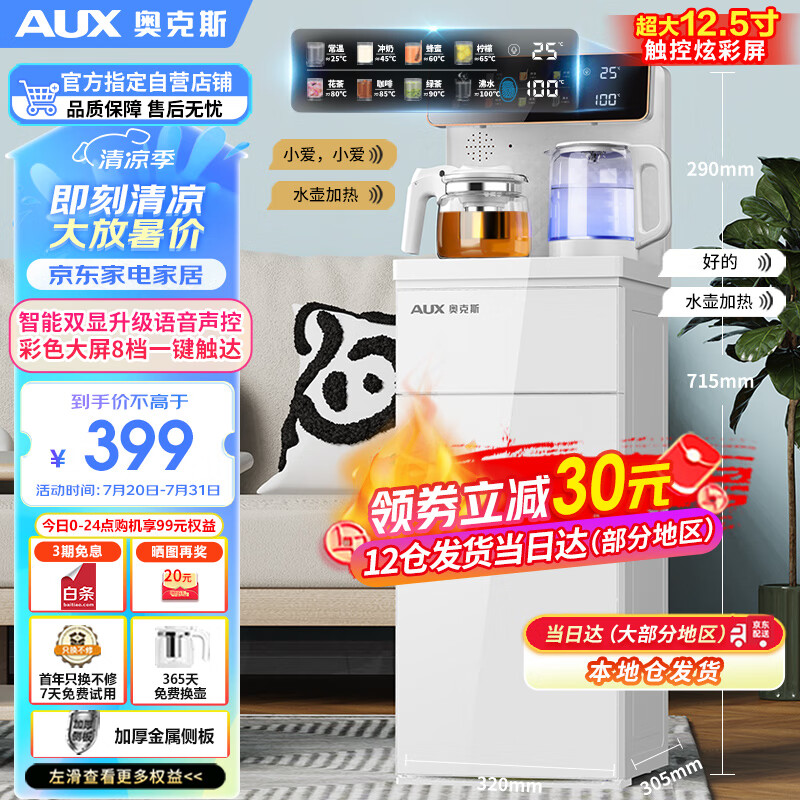 奥克斯(AUX)家用大款茶吧机 智能语音声控远程遥控可触控大屏饮水机 彩屏双温双显长效保温加厚侧板YCB-41价格:429.00元!