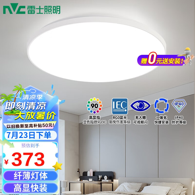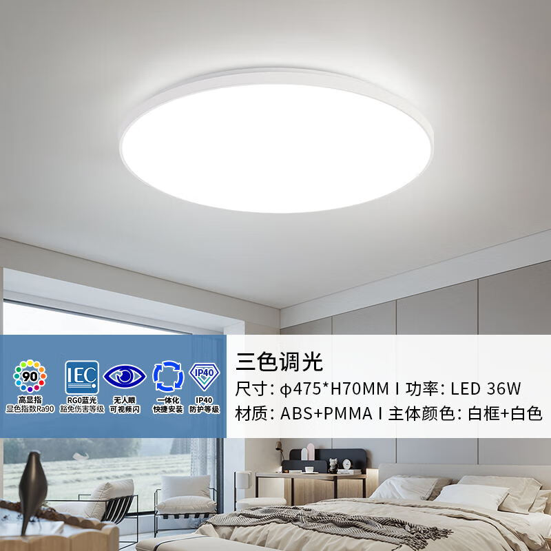 雷士(NVC)LED吸顶灯现代简约卧室书房餐厅灯Ra90高显色IP40防护 如玉36w价格:373.00元!
