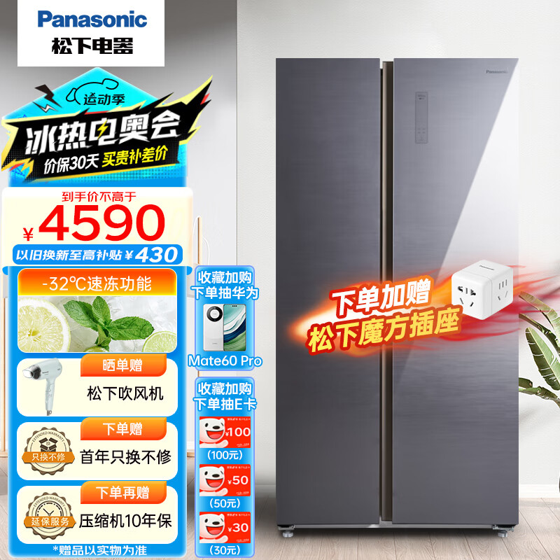 松下(Panasonic)冰箱632升大容量冰箱双开门对开门1级能效银离子kang菌风冷无霜家用冰箱优选NR-EW63WXA-H价格:3959.00元!