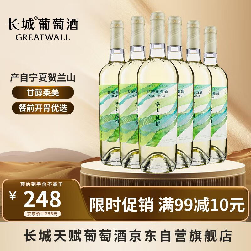 长城宁夏贺兰山东麓 塞上风情贵人香干白葡萄酒 750ml*6 整箱装价格:258.00元!
