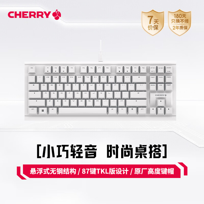 CHERRY樱桃 MX1.1机械键盘 G80-3910游戏键盘 悬浮式无钢结构 87键有线键盘 电脑键盘 白色 红轴价格:299.00元!