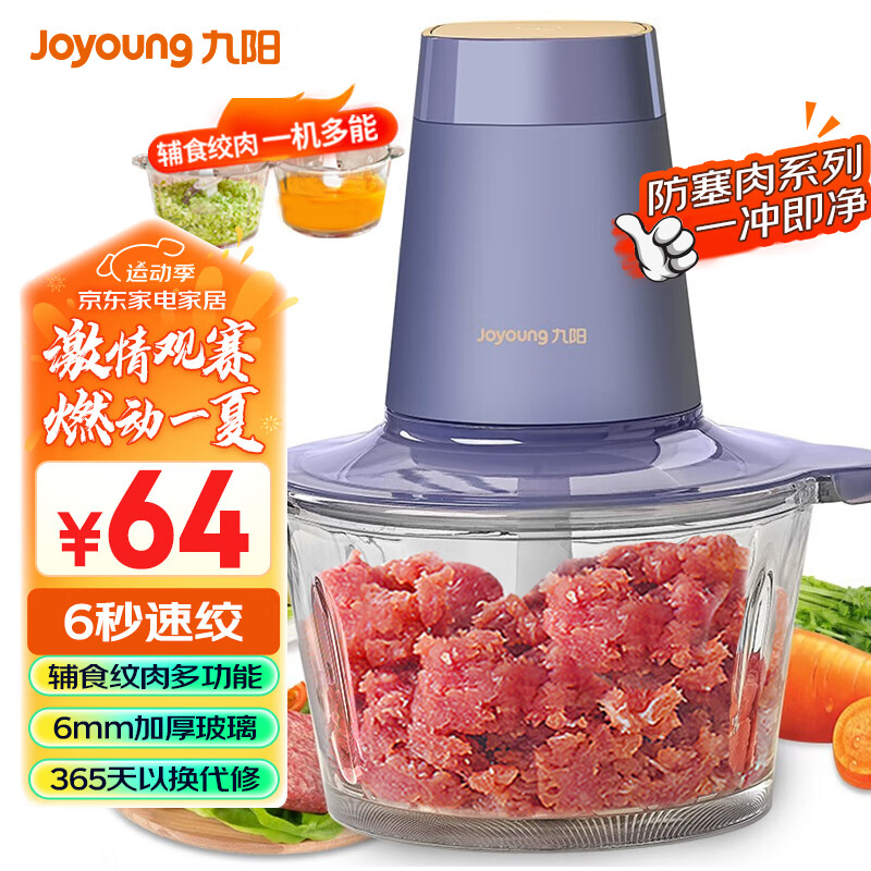 九阳(Joyoung)绞肉机家用 绞馅机 碎肉机 电动多功能料理搅拌机打肉机饺子肉馅蒜蓉机 搅肉机S18-LA170价格:64.00元!