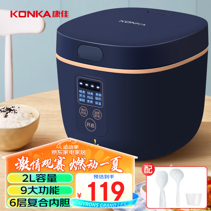 康佳(KONKA)迷你电饭煲小电饭锅 2L容量1-3人智能温控24小时预约煮饭煮粥锅 KRC-RS1价格:119.00元!