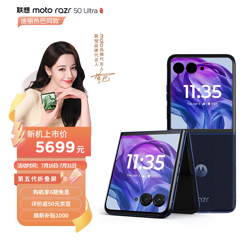 摩托罗拉 联想moto razr 50 Ultra 第五代折叠屏 4吋无界大外屏 双卡 5G手机 AI元启版 12+256GB 复古单宁价格:5699.00元!