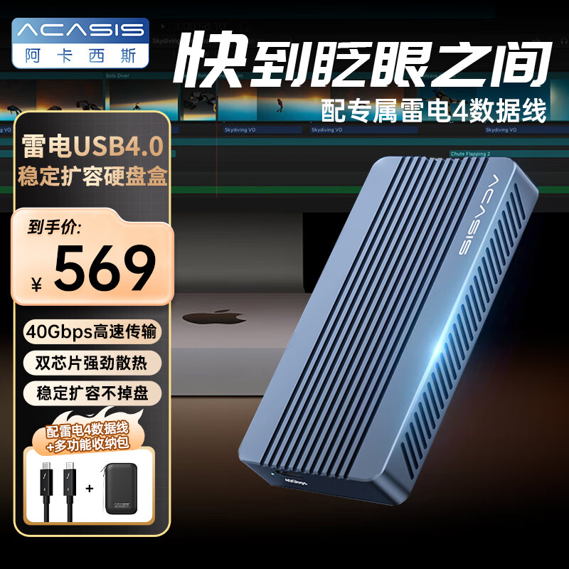 阿卡西斯USB4.0硬盘盒NVMe M.2移动40Gbps固态硬盘盒Type-c笔记本雷电3台式机电脑SSD固态外置硬盘盒价格:621.10元!