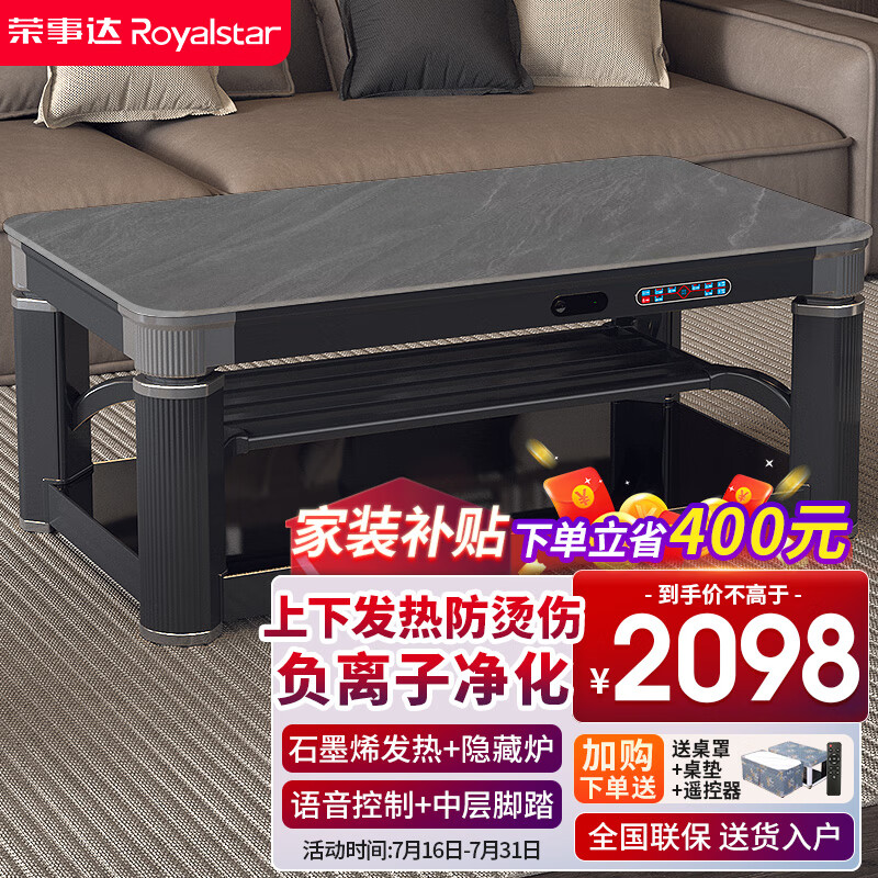 荣事达电暖桌石1.38米墨烯发热烤火茶几带语音控制升降取暖桌多功能电暖炉取暖器长方形餐桌烤火桌RC-C9价格:2498.00元!