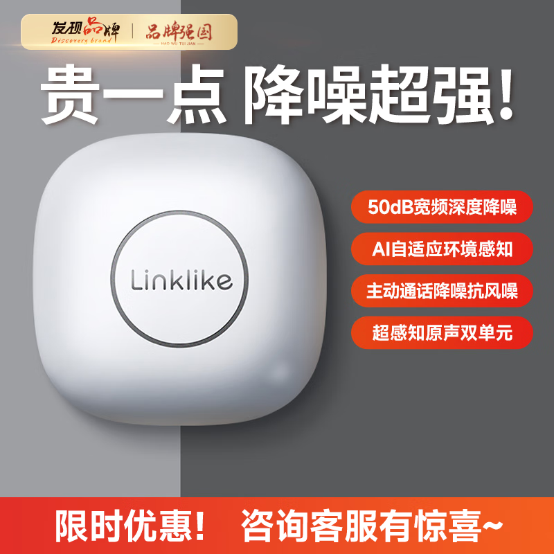 linklike【2024新款丨6麦降噪】蓝牙耳机主动降噪无线耳机入耳式超长续航高端音质适用于苹果华为排行前十 50dB深度降噪丨Halo 皓月白价格:598.00元!
