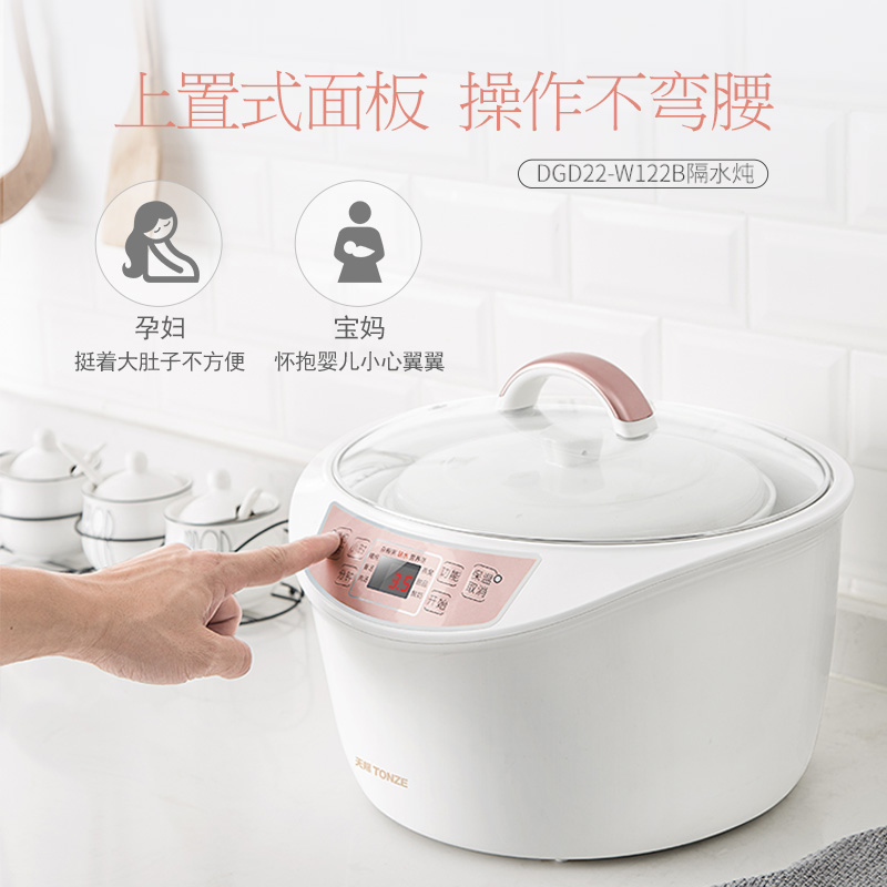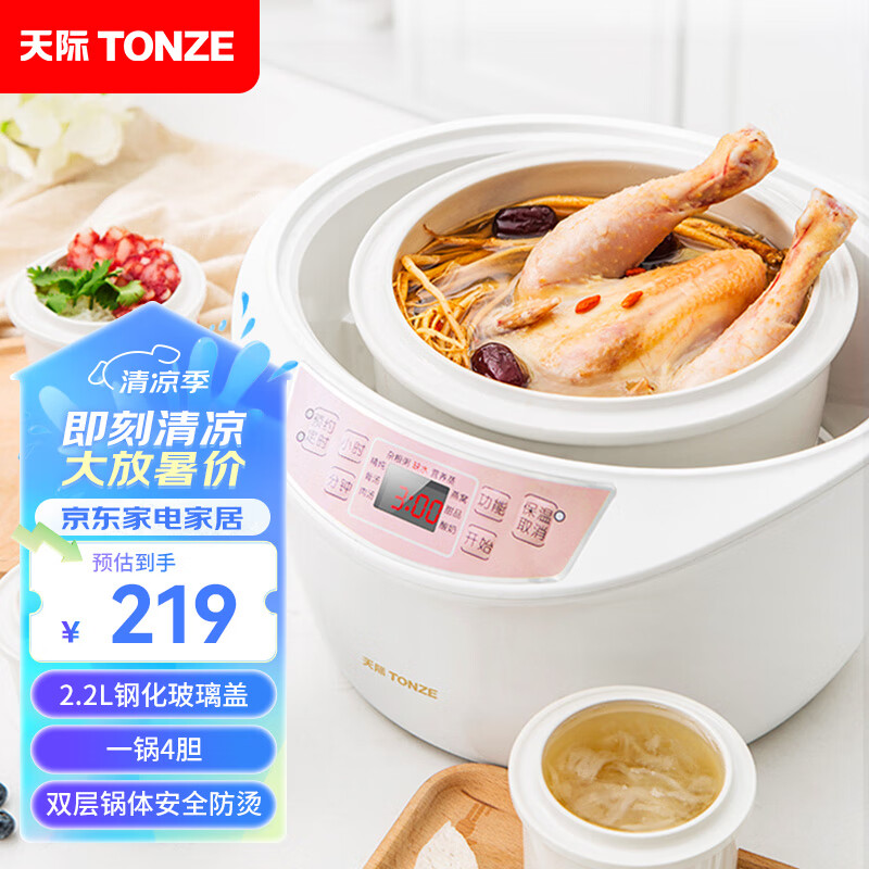天际(TONZE)电炖锅 电炖盅 隔水炖锅 煲汤锅炖汤锅 婴儿辅食煮粥锅 养生燕窝炖盅 白瓷4胆 DGD22-W122B 2.2L价格:219.00元!