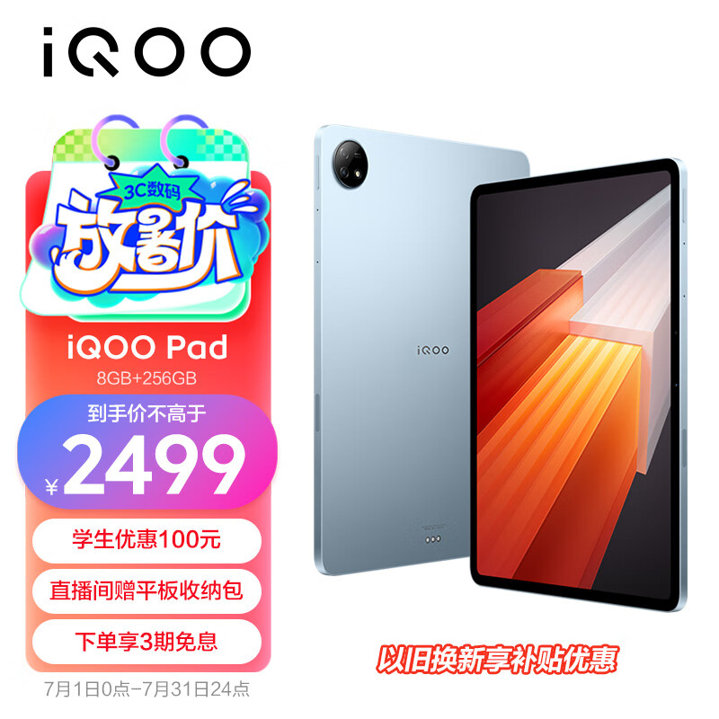 iQOO Pad 12.1英寸平板电脑(天玑9000+旗舰芯 8GB+256GB 144Hz超感巨幕 10000mAh电池)星海漫航价格:2249.00元!