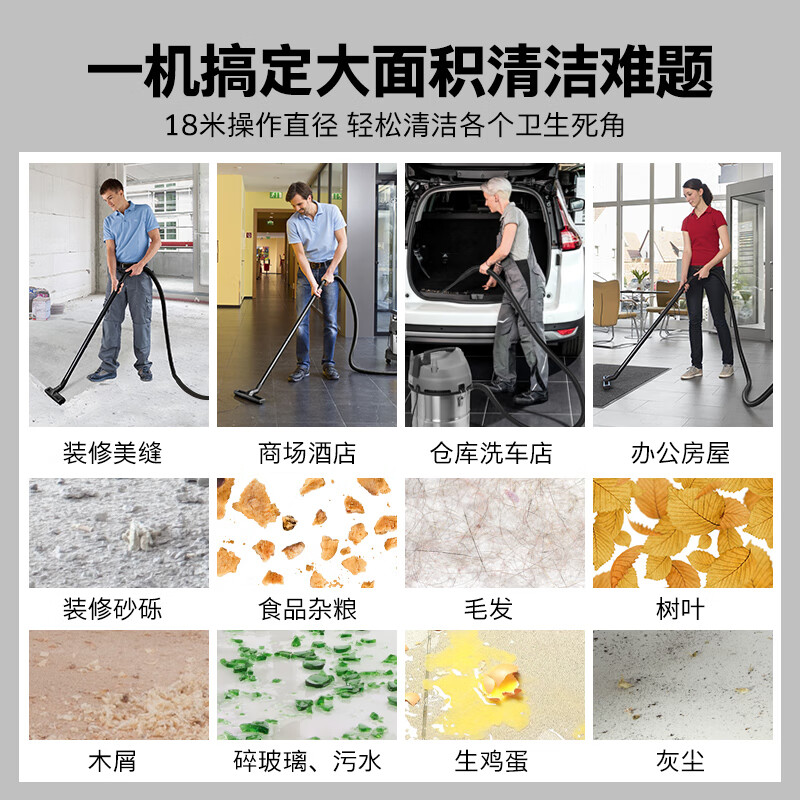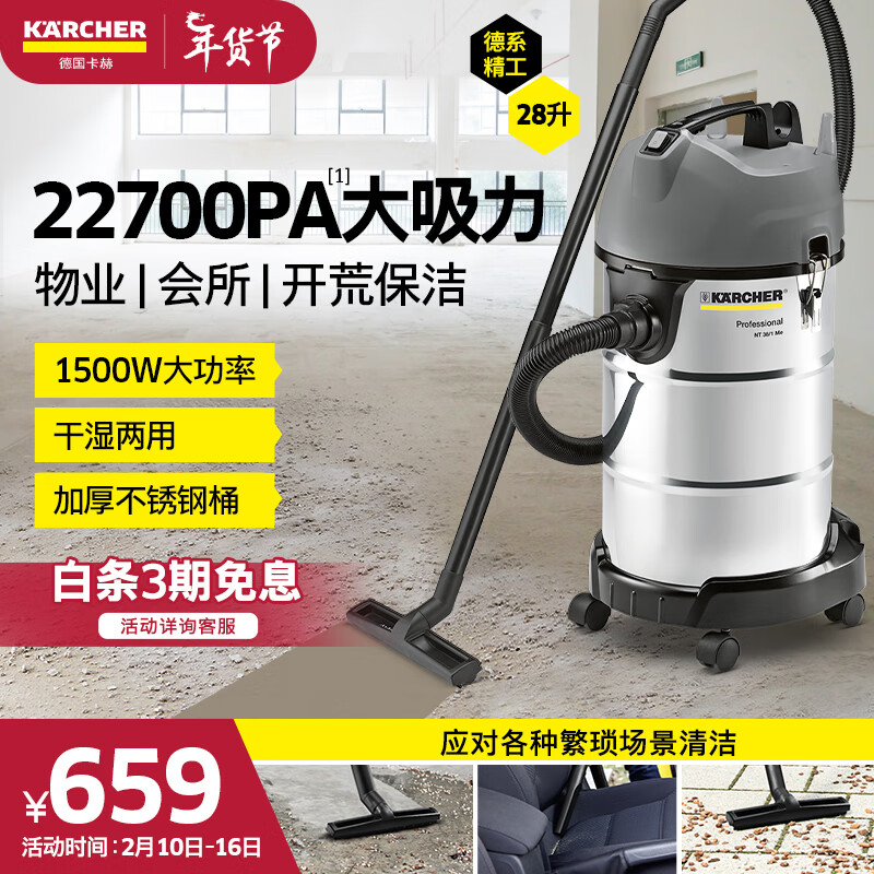 KARCHER 德国卡赫 家用商用工业不锈钢桶式干湿两用大功率大吸力吸尘器 NT30/1 联保价格:699.00元!