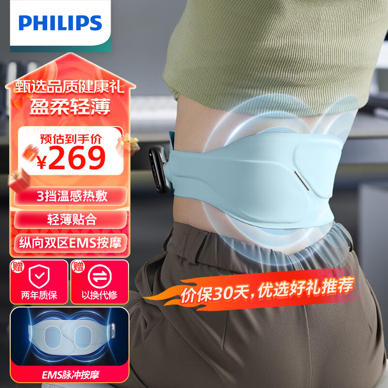 飞利浦(PHILIPS)腰部按摩器 无线轻薄贴肤热敷暖腹护腰仪 大姨妈痛经腰酸疼腰带实用送女友情人节七夕送礼3302B价格:259.00元!
