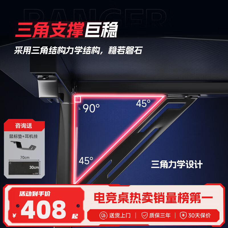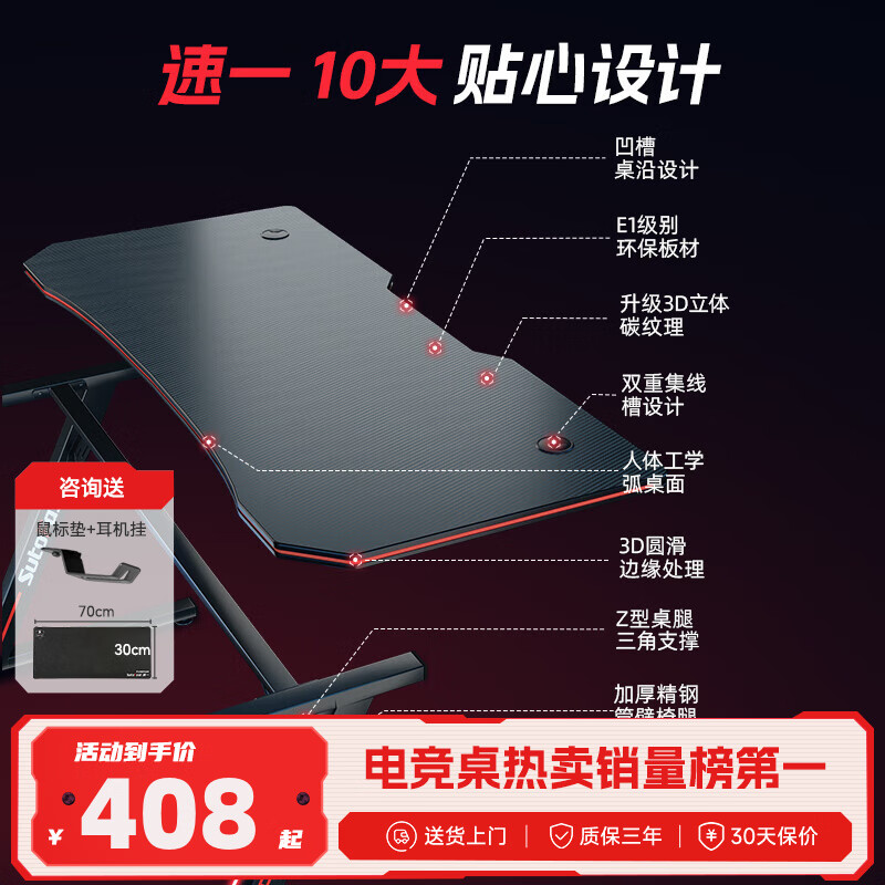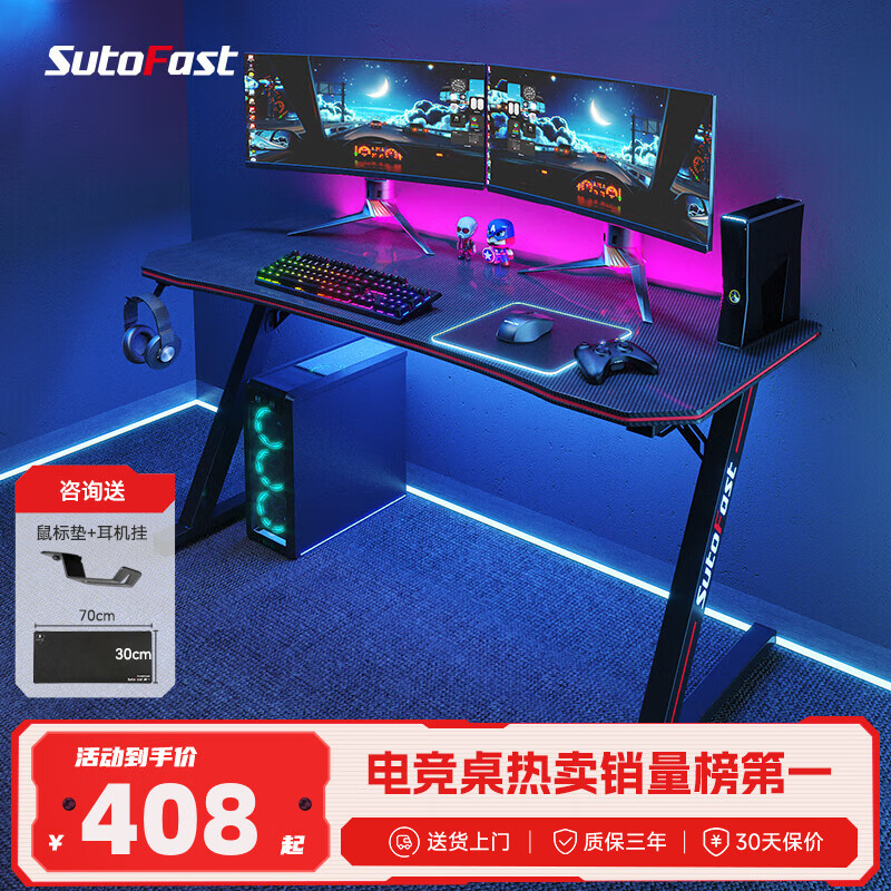 速一电脑桌电竞桌电脑桌台式电竞游戏桌家用办公家用书桌家用简易书桌 暗夜游侠【140*60*75】价格:899.00元!