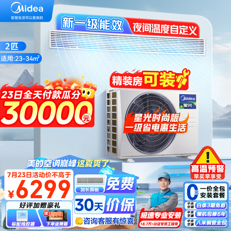 美的(Midea)中央空调风管机一拖一2匹一级能效变频冷暖家用嵌入式客厅星光时尚版KFR-51T2W/BN8-XG(1)Ⅲ价格:6299.00元!