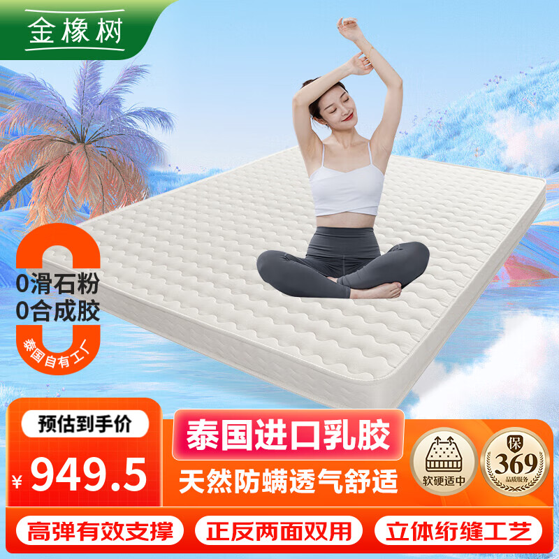 金橡树绗缝乳胶床垫榻榻米加厚双人床垫1.8米*2米 厚10cm价格:2399.00元!
