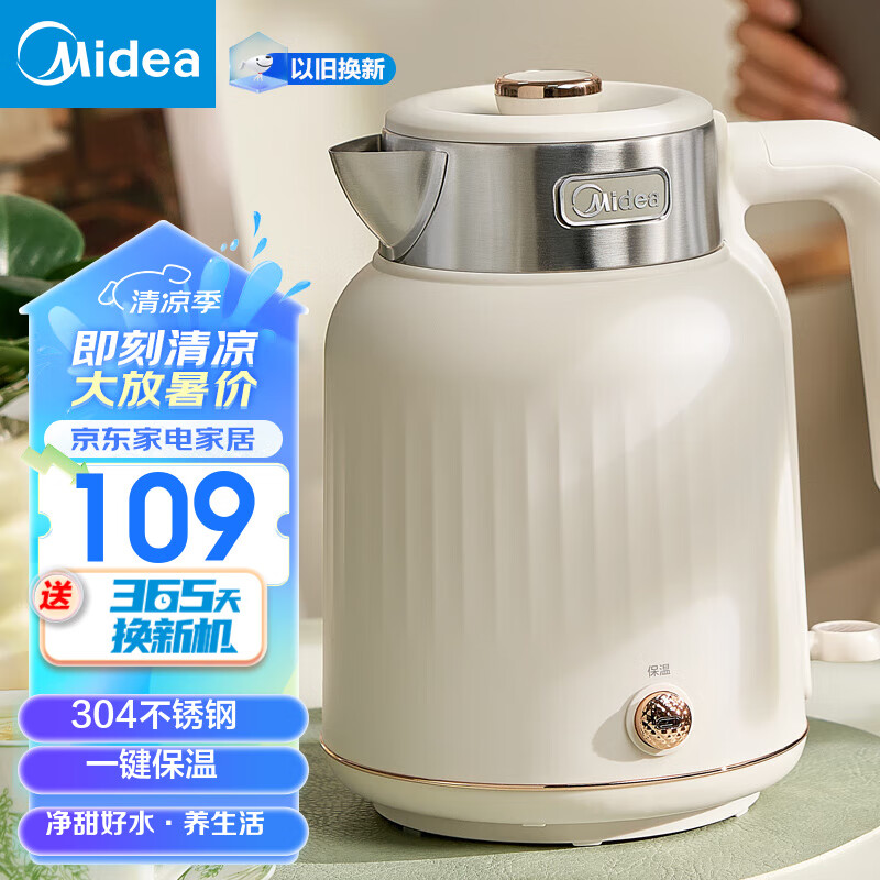 美的(Midea)电水壶烧水壶 热水壶电热水壶 一键保温恒温开水壶304不锈钢 大容量双层防烫无缝内胆 SH51-Q 1.5L价格:189.00元!