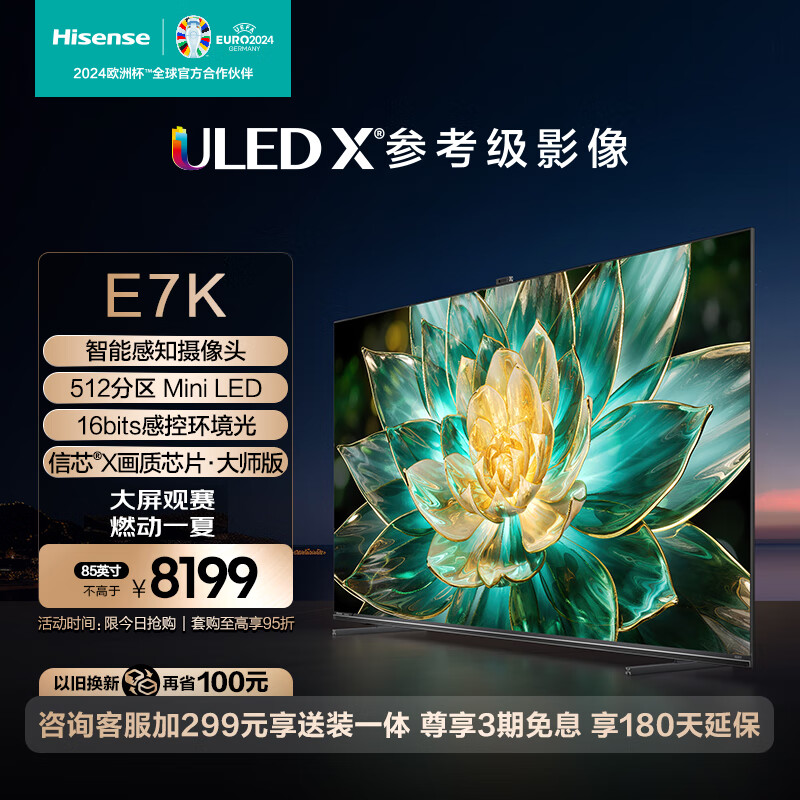 海信电视85E7K 85英寸 ULED X Mini LED 512分区 AI摄像头超感知 智慧屏 液晶智能平板电视机价格:8199.00元!