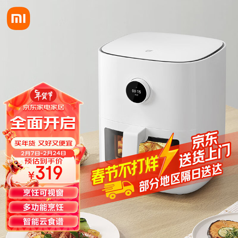 米家智能空气炸锅pro4L 可视化窗设计 无油低脂 1200W光波管 APP云食谱价格:309.00元!