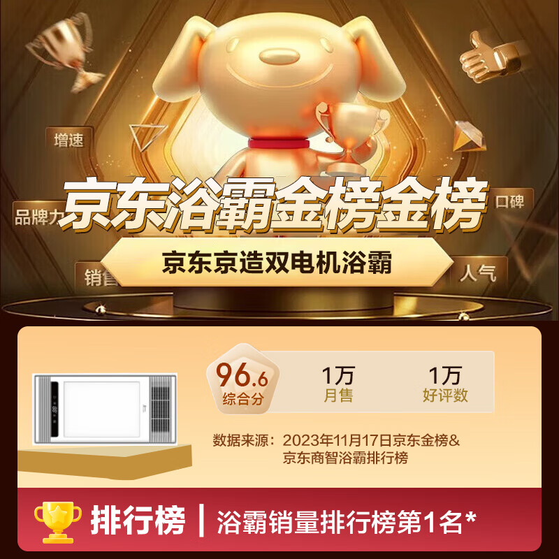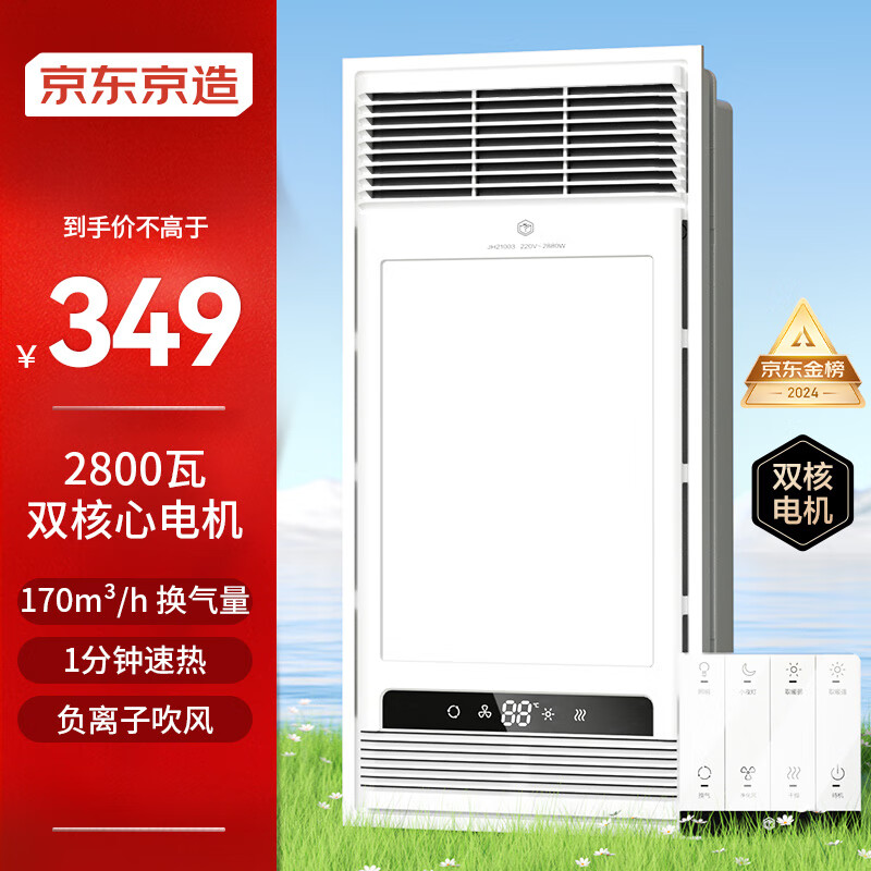 京东京造浴霸 大功率风暖照明排换气八合一 浴室卫生间集成吊顶双电机超薄价格:399.00元!
