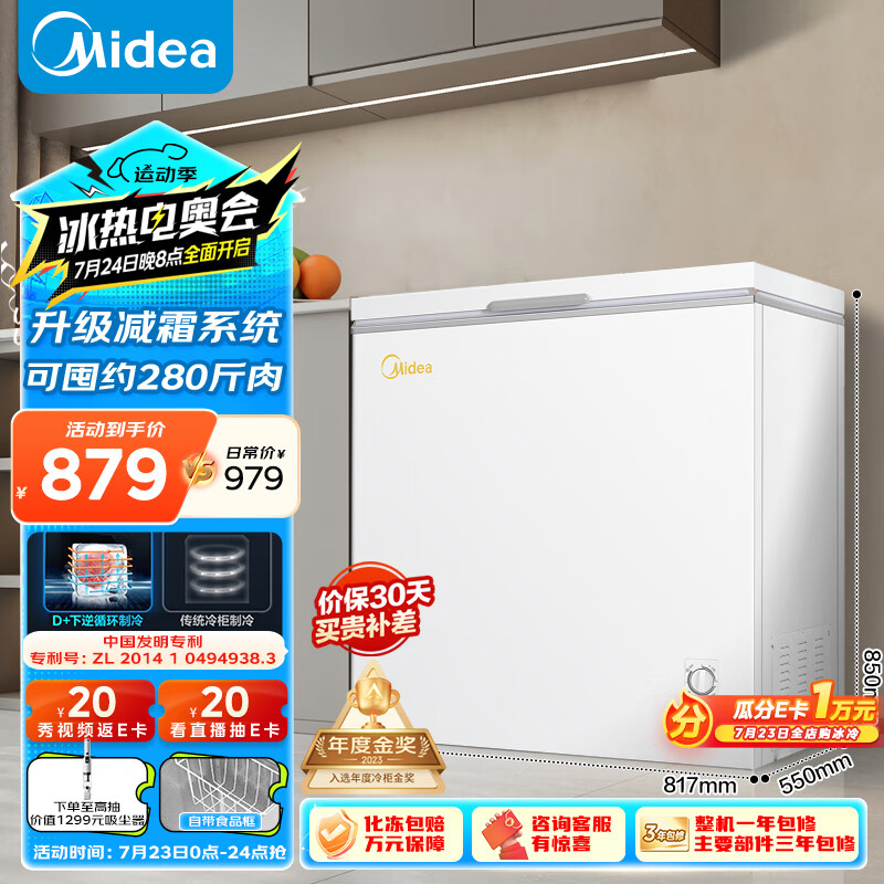 美的(Midea)203升 低霜家商两用大冷柜 冷藏冷冻保鲜冰柜 一级能效卧式小型单开门冰箱雪柜 BD/BC-203KMD(E)价格:879.00元!