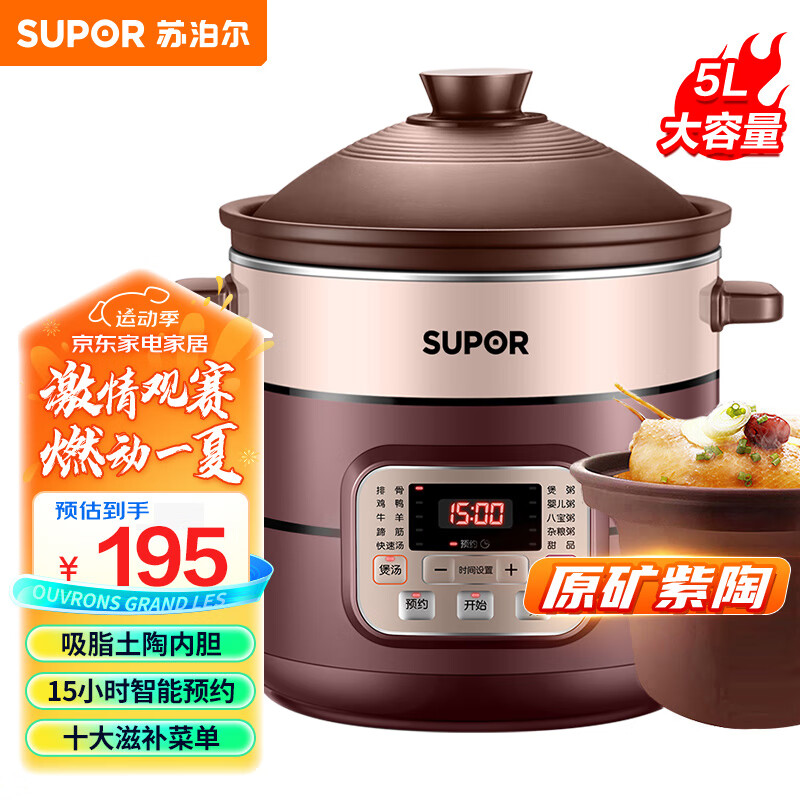 苏泊尔(SUPOR)电炖锅 电炖盅 煲汤锅炖汤锅 电煮锅 燕窝炖盅 煮粥神器 电砂锅 5L家用陶瓷内胆DG50YC806价格:198.00元!