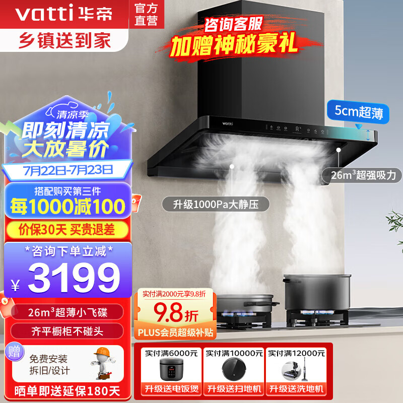 华帝(VATTI)【超级新品】小飞碟欧式超薄抽油烟机i11S35官方三腔S35顶吸顶侧一体26风量变频烟灶联动自清洗 i11S35超薄小飞碟 天然气价格:3499.00元!