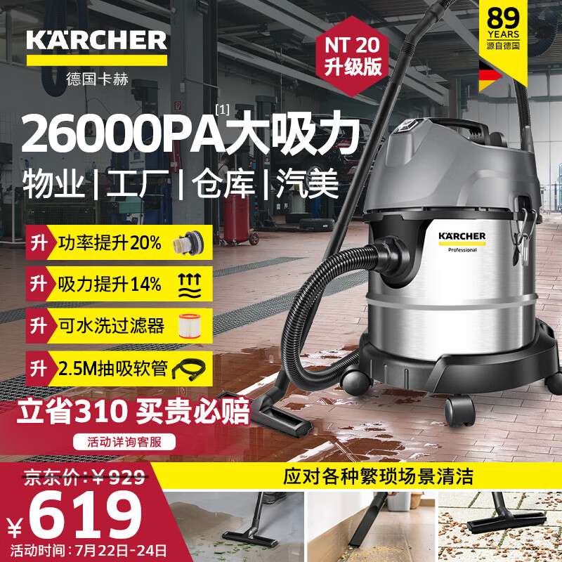 KARCHER德国卡赫 家用商用工业加厚不锈钢桶式 汽美/宠物店 干湿两用大吸力吸尘器全新升级 NT20/1 Plus价格:619.00元!