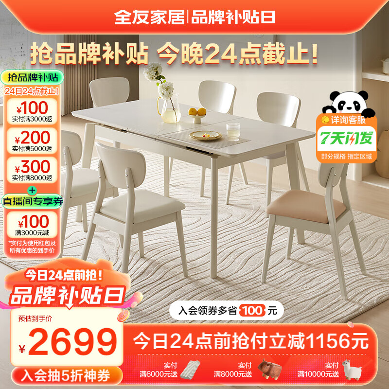 全友家居 餐桌现代简约岩板餐桌可伸缩功能餐桌吃饭桌子家具DW1120C价格:3855.71元!