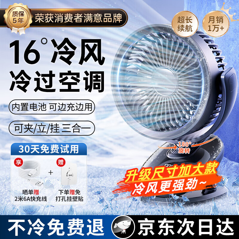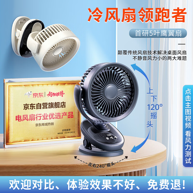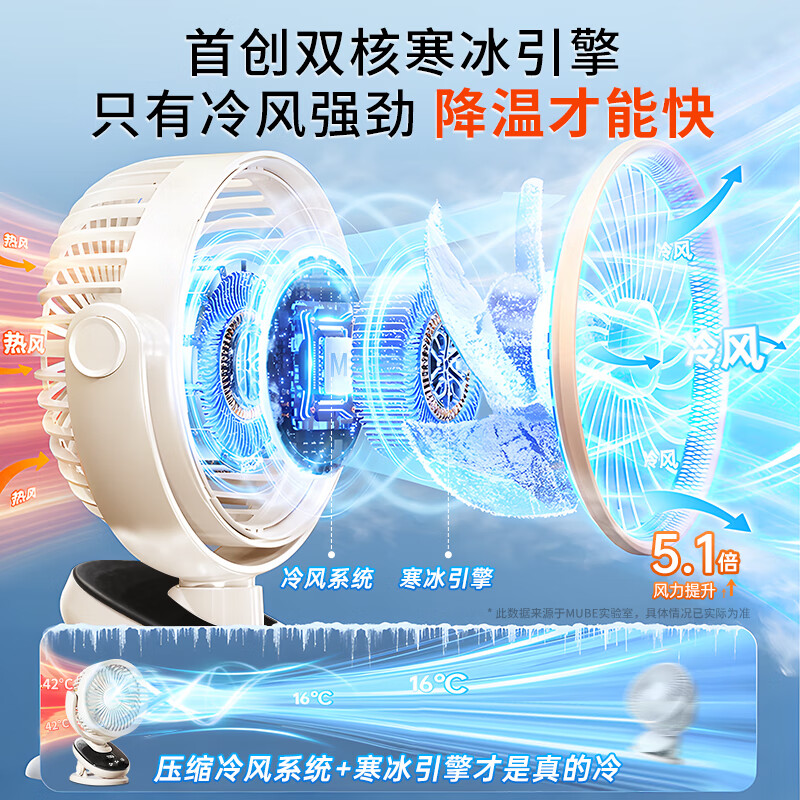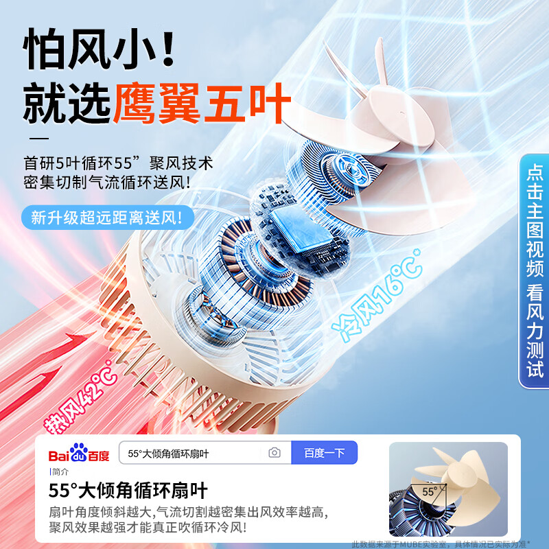 MUBE【德国】静音小风扇学生宿舍usb台式电风扇桌面摇头小空调空气循环扇制冷夹子厨房床头壁挂小型扇 【轻奢蓝-大容量款】劲爽36H丨极速吹凉风丨轻音价格:209.00元!