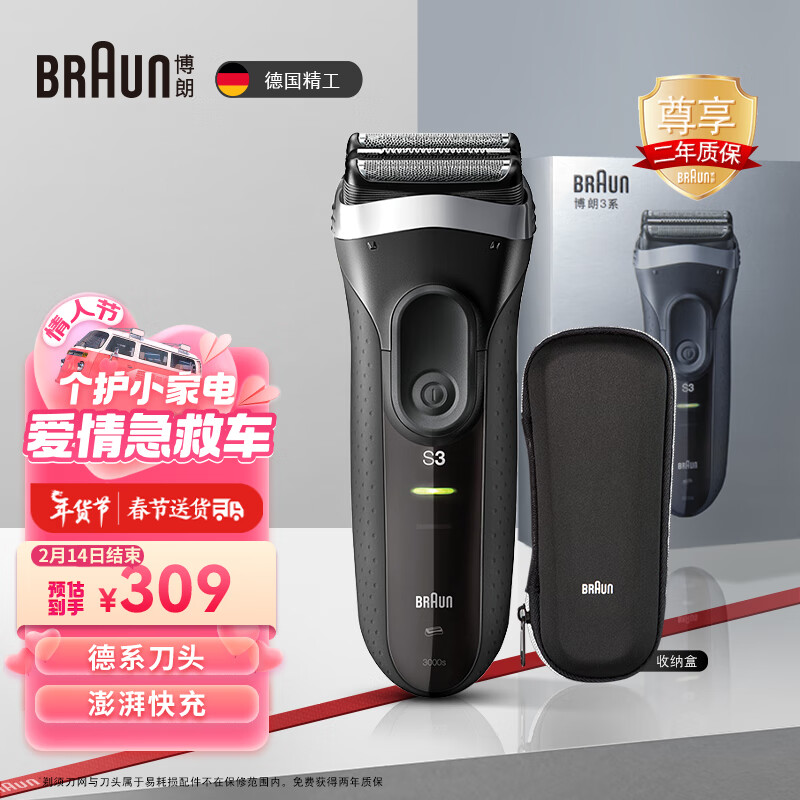 博朗(BRAUN)情人节礼物新3系电动剃须刀德国进口刀头往复式剃须刀刮胡刀电动男士男生生日礼物送老公送男友价格:309.00元!