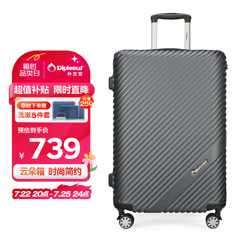 Diplomat外交官行李箱28英寸拉杆箱男大容量密码云朵旅行箱子女TC-23254灰价格:999.00元!
