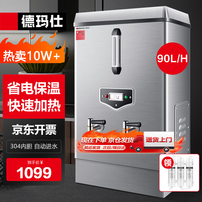 德玛仕(DEMASHI)开水器商用 电热开水机 全自动进水 304不锈钢 烧水器商用 KS-90F(发泡款)380V价格:1099.00元!