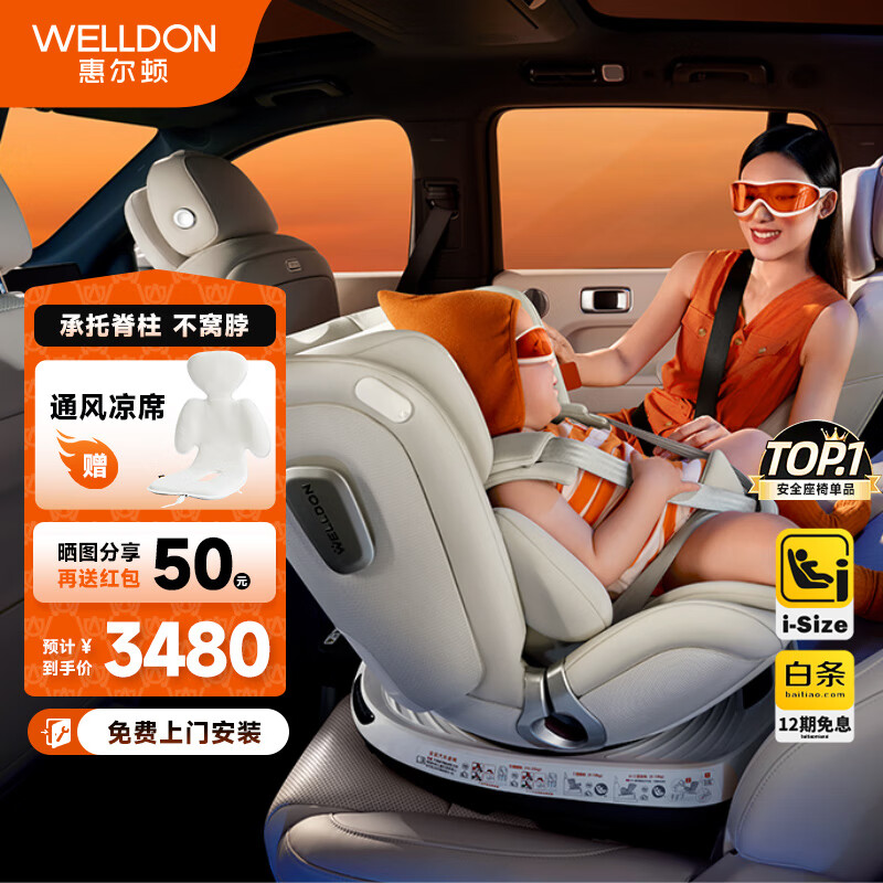 惠尔顿智转2儿童座椅0-4-7岁i-Size认证舒适头等舱通风散热360旋转价格:3480.00元!
