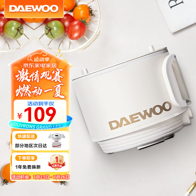 大宇(DAEWOO)电煮锅 小电锅宿舍小煮锅学生泡面锅多功能电热锅蒸煮一体迷你电火锅单人小圆锅年货送礼S26白色价格:109.00元!