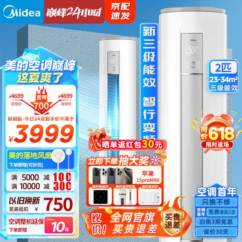 美的(Midea)空调柜机 2匹 智行Ⅱ 变频冷暖 强劲除湿 客厅空调立式 自清洁智能控温 KFR-51LW/N8MJA3Ⅱ价格:3999.00元!