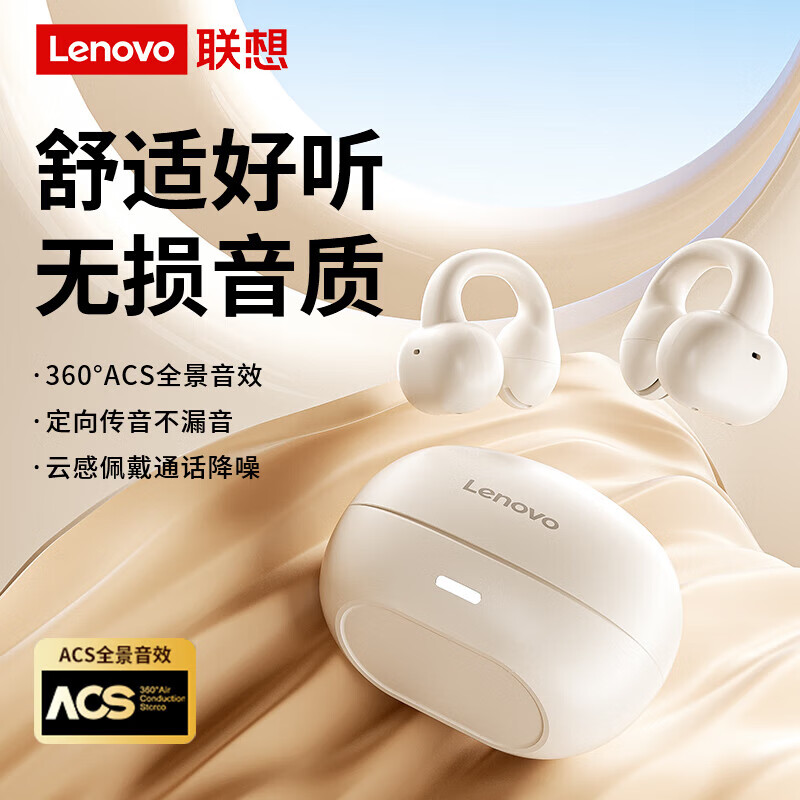联想(lenovo)蓝牙耳机骨传导概念耳夹式开放式无线不入耳挂耳式运动通话降噪适用于苹果华为小米手机TC3308白色价格:89.00元!