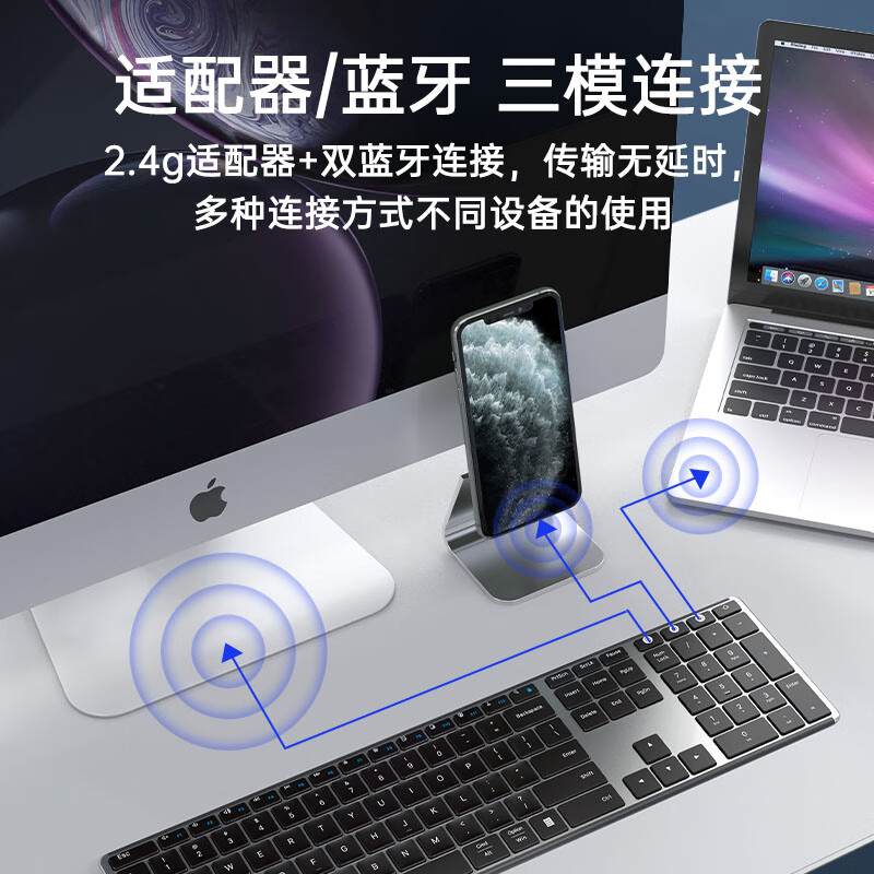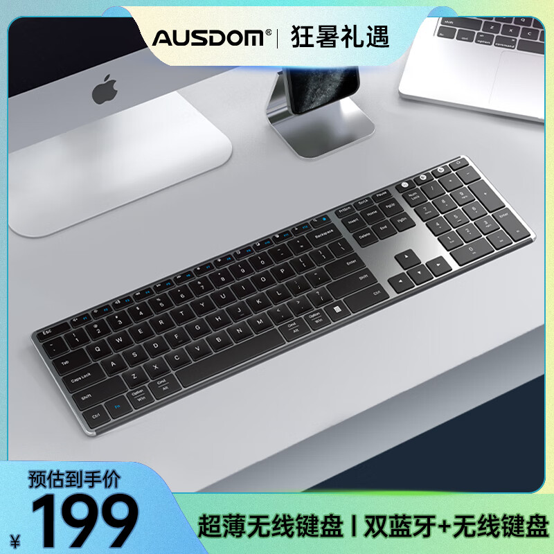 阿斯盾无线蓝牙键盘商务办公家用台式电脑笔记本键盘静音超薄金属剪刀脚充电式全尺寸110键轻音键盘价格:199.00元!
