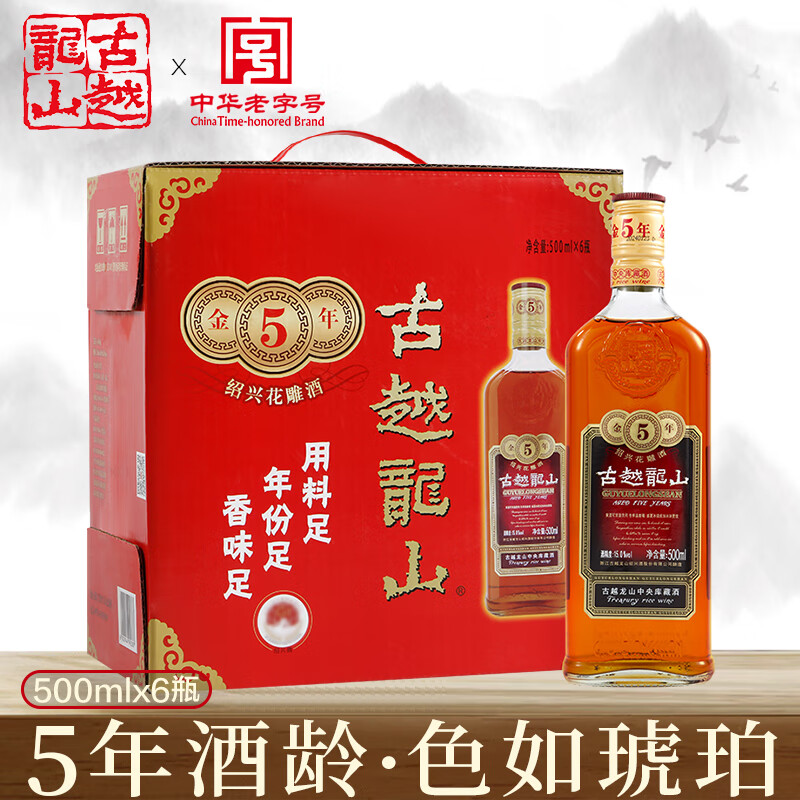 古越龙山 中央库藏金五年 半干型 绍兴黄酒 500ml*6瓶 整箱装 杭州版价格:118.00元!