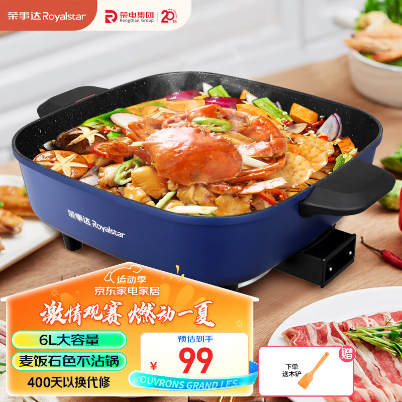 荣事达(Royalstar)电火锅家用多功能煎烤涮一体炒菜电锅6L大容量不沾电热锅电煮锅电炒锅 RHG-136B价格:109.00元!