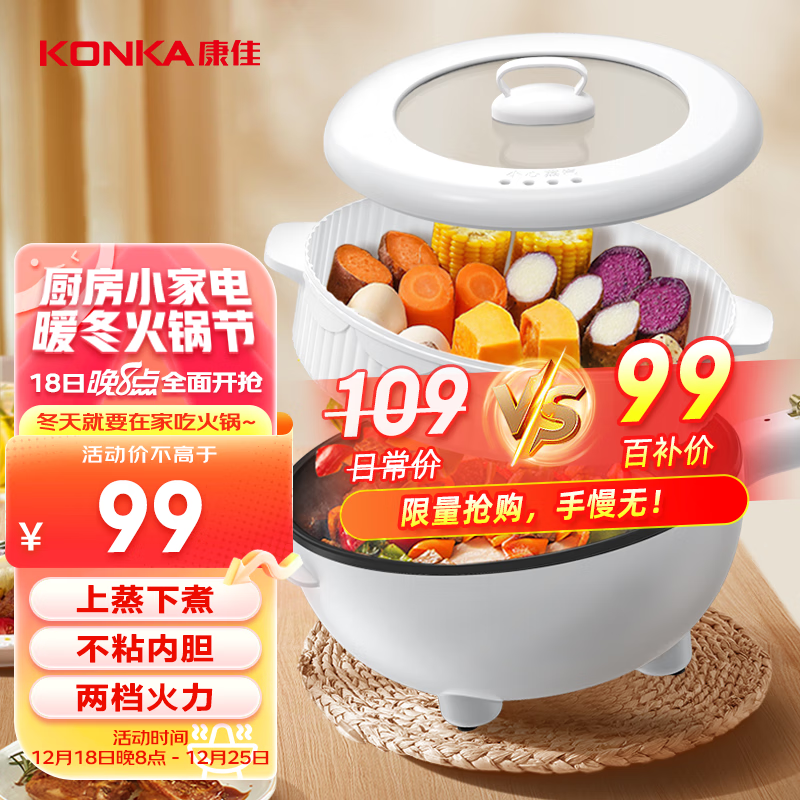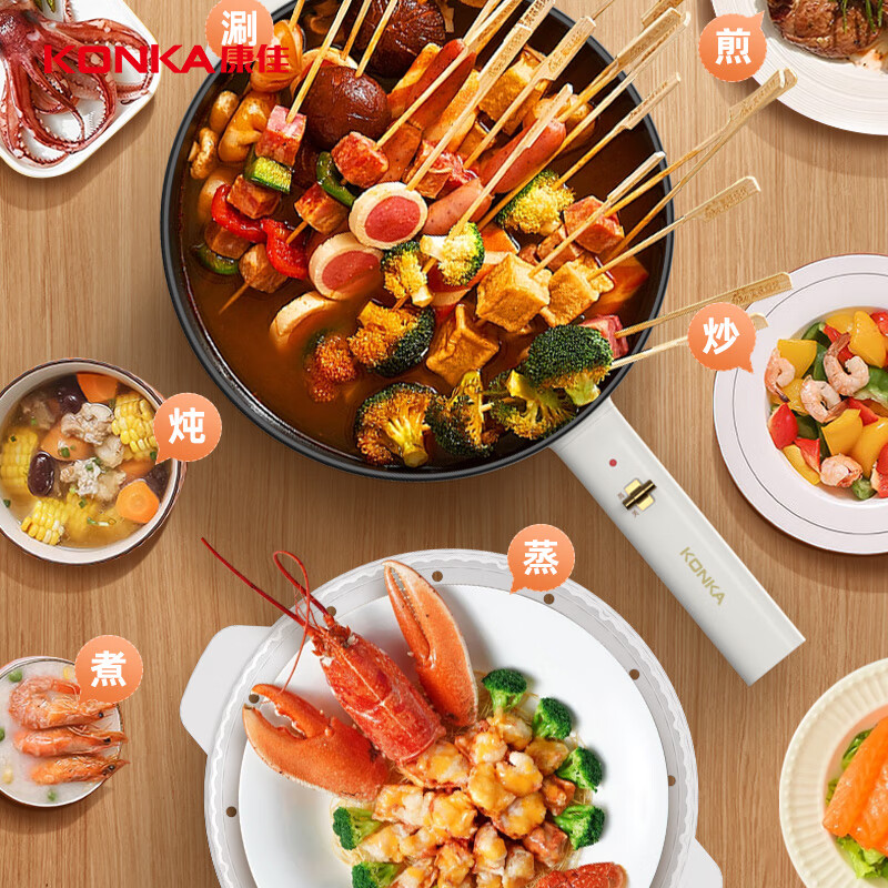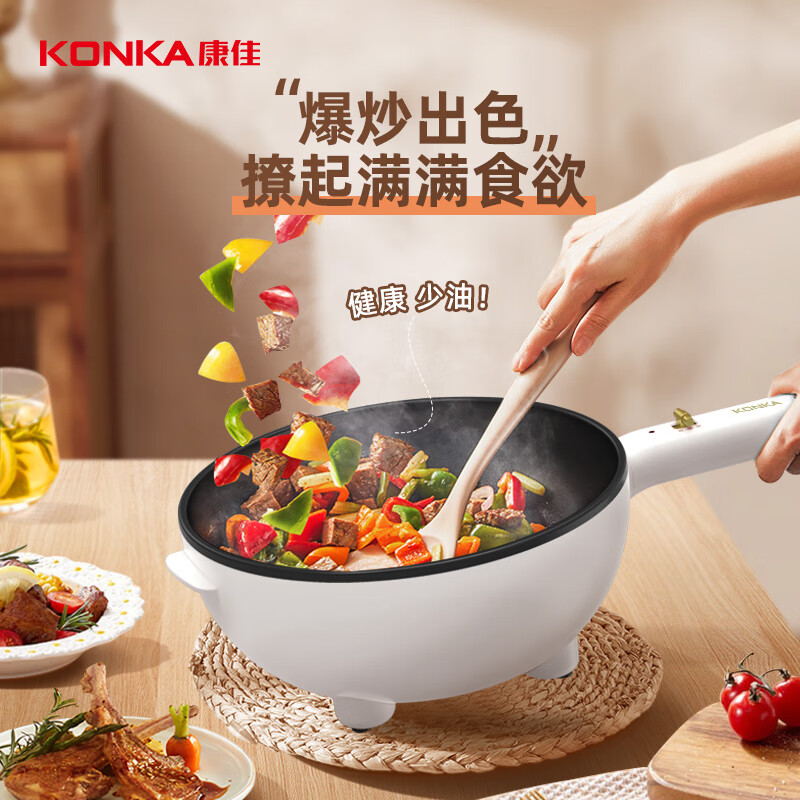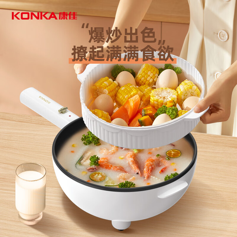 康佳(KONKA)电炒锅 家用电火锅4L多功能大功率爆炒菜上蒸下煮一体电煮锅电热锅大容量电蒸锅KDCG-1511(Z)-W价格:99.00元!