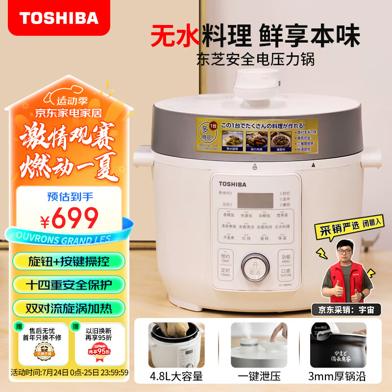 东芝(TOSHIBA)4.8L智能电锅 电饭锅 1-8人 家用多功能煲无水料理大容量电饭煲 PC-48MRSC(W)价格:699.00元!