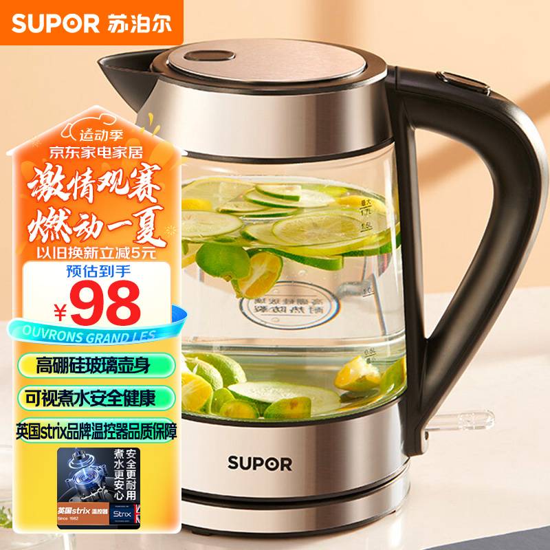 苏泊尔(SUPOR)玻璃电水壶热水壶高硼硅玻璃电热水壶 1.7L烧水壶 SWF17E26A价格:98.00元!