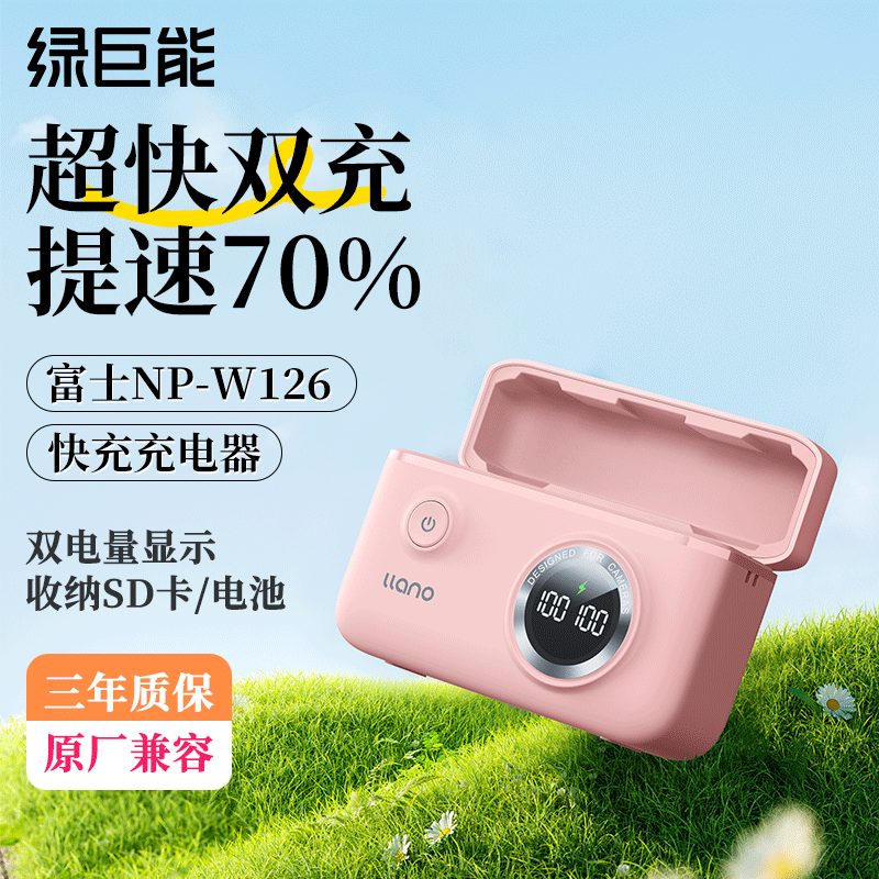 绿巨能(llano)富士NP-W126S相机电池快充盒XT30二代/XS10/XT20/XE4/XT50/X100VI数码相机可收纳数显充电器樱花粉价格:169.00元!