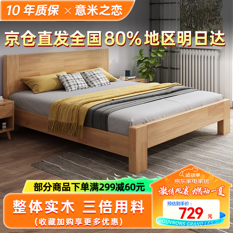 意米之恋橡胶木实木床 主卧双人床 卧室家具 品质大板 208cm*100cm*80cm价格:789.00元!