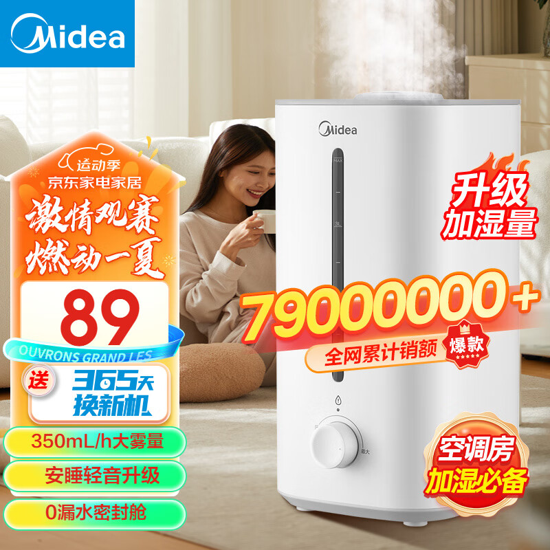 美的(Midea)【空调伴侣】加湿器升级卧室空气加湿器空气净化大容量家用办公室桌面婴儿低噪大喷雾 【升级巨量加湿】便捷上加水SC-3G40S价格:128.00元!