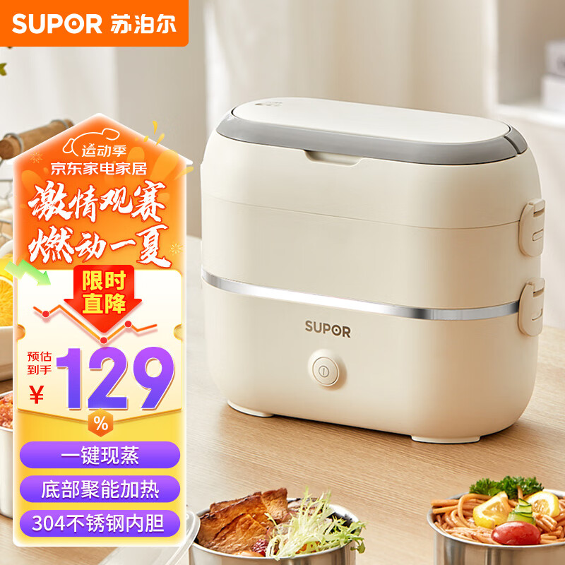 苏泊尔(SUPOR)电热饭盒 加热饭盒 双层四胆2L大容量便携式蒸煮热上班族多功能保温饭盒DH04FD815价格:129.00元!